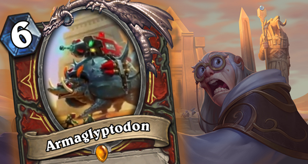 Armaglyptodon est une 4/7 pour 6 cristaux de mana. Ce serviteur est classé dans la catégorie Bête dispose d'une Provocation. À la fin de votre tour, donne à tous les serviteurs avec Provocation dans votre main +2/+2.