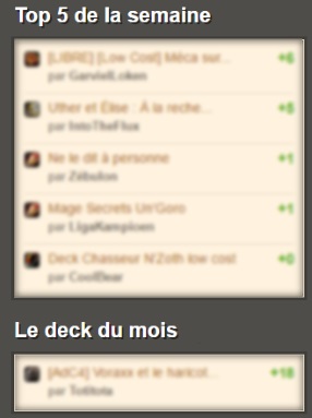 Enfin, une section spéciale sera développée pour mettre en avant le deck du mois sur la barre latérale du site. Le gagnant du mois sera le seul deck de sa section et profitera ainsi de la même visibilité que ceux qui apparaissent déjà dans les Top 5.