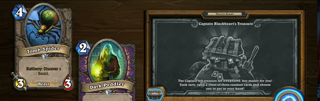 Le trésor du capitaine Coeur-noir arrivera dans trois semaines. Il s'agit d'un bras de fer qui a inspiré la mécanique de Découverte de Ligue des explorateurs. Pour rappel, cette mécanique dévoile trois cartes d'un même coût de mana et vous devez en choisir une.