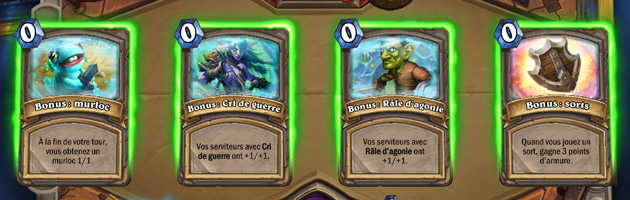 Votre but consiste donc de construire un deck Cri de guerre, Râle d'agonie, Murlocs ou Spell et de choisir la carte qui correspond à votre deck en début de partie.