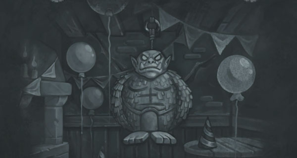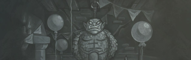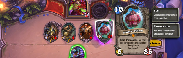 Une fois vos 25 décorations posées, le boss Piñata Golem apparaît. Notez que si le plateau est rempli de serviteurs au moment de l'apparition du boss, celui-ci les détruit tous afin de libérer l'endroit où il doit se positionner :