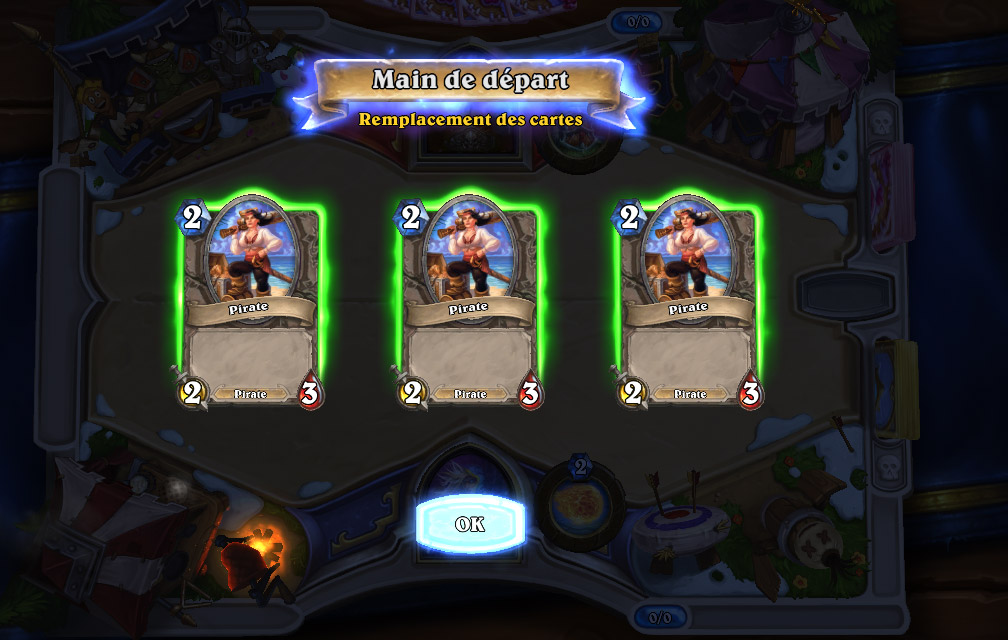 Il s'agit d'un bras de fer qui est revenu de très nombreuses fois dans Hearthstone. L'objectif n'a pas changé et à l'aide d'un deck préconstruit, vous devez remporter la partie. À chaque tour, 3 cartes aléatoires se présentent à vous. Vous devez choisir celle que vous souhaitez avoir en main.