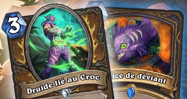 La seconde carte se nomme Druide lié au Croc. Destinée au Druide, cette carte est une 4/3 pour 3 cristaux de mana. Son Râle d’agonie réduit le coût d’une Bête de votre main de 2 . N'hésitez pas à partager votre avis sur ces 2 nouvelles cartes !