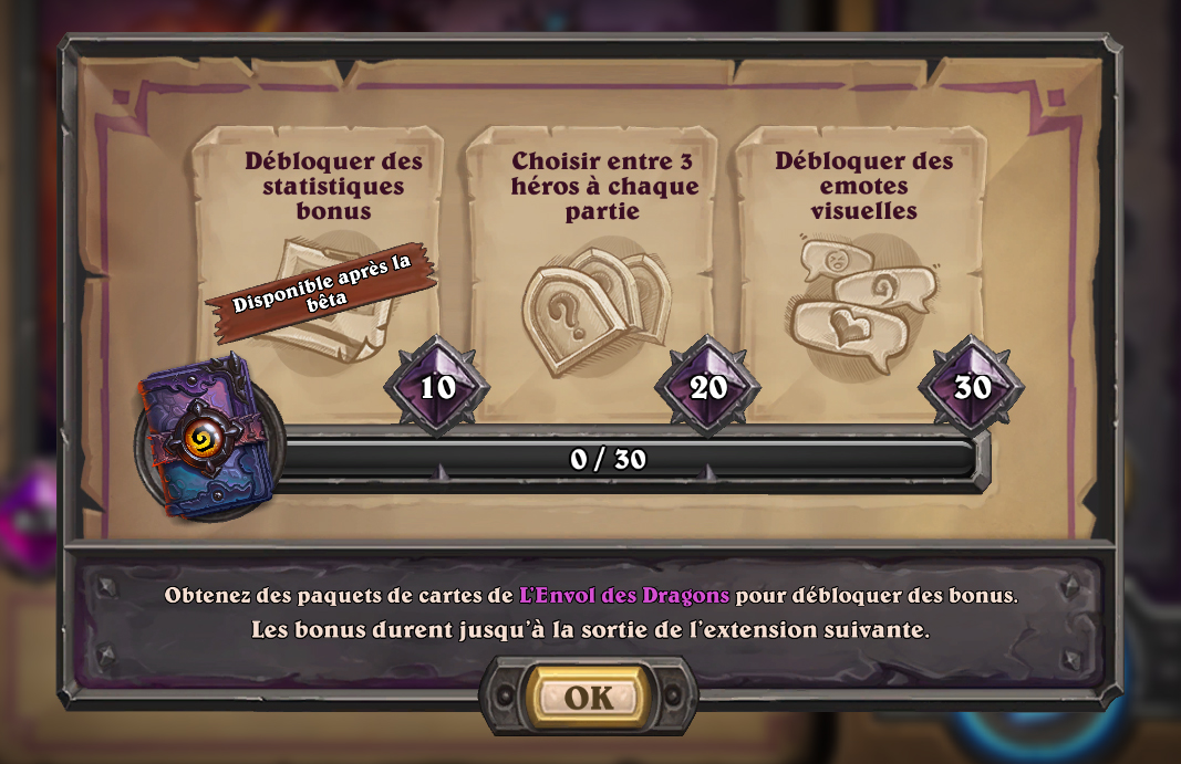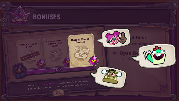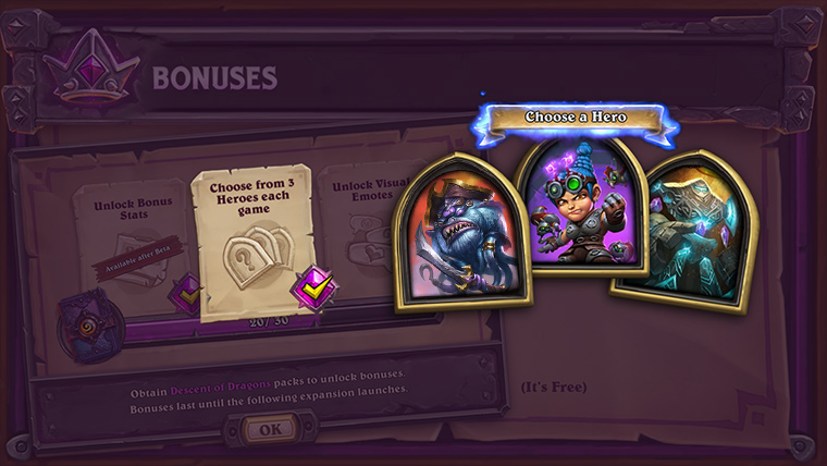 Il est possible d'obtenir des bonus supplémentaires pour Champs de bataille de Hearthstone. Ces derniers sont destinés aux joueurs ayant acquis des paquets de cartes de la dernière extension de Hearthstone. La fonctionnalité sera disponible lors de la sortie officielle du mode de jeu.