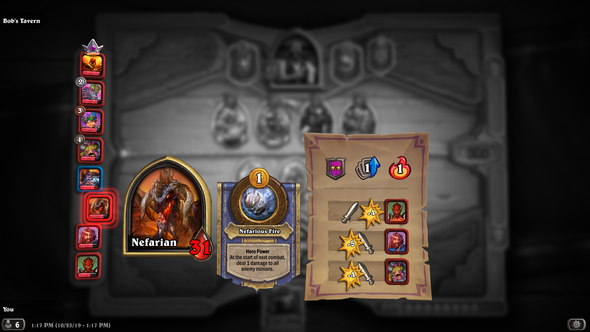 Lorsque vous avez choisi votre héros, vous rejoignez la taverne de Bob. Si vous êtes un adepte des aventures Hearthstone, vous devez connaître ce personnage incontournable lorsque vous souhaitez constituer votre deck. Dans champs de bataille, Bob fonctionne un peu différemment puisque vous le rencontrez au début de la partie et ensuite à chaque tour afin de constituer votre deck à l’aide de pièces d'or spécifiques à ce mode de jeu.