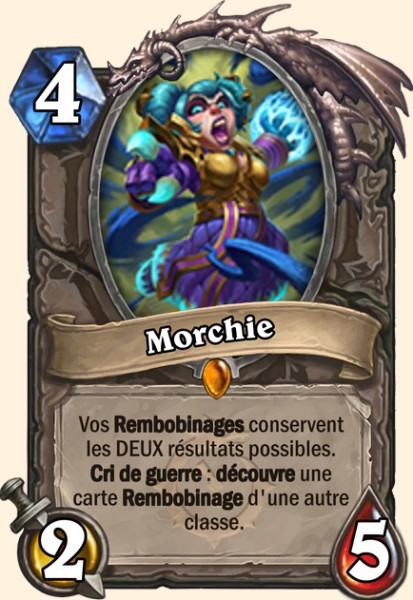 Faites connaissance avec Morchie, le pendant espiègle de Chromie. Alors que Chromie protège les lignes temporelles, Morchie enfreint les règles allègrement. Avec Rembobinage, vous pouvez relancer l’effet aléatoire de la carte que vous venez de jouer, mais Morchie vous permet de conserver les deux résultats. Doublez les lignes temporelles, doublez le plaisir de jeu !