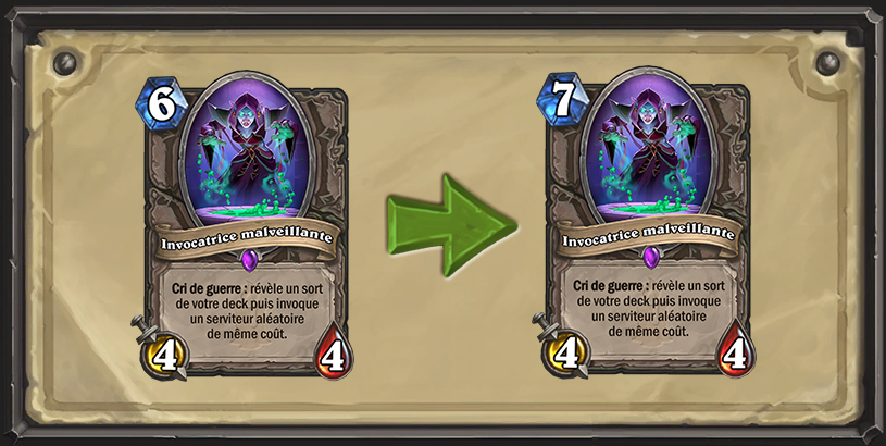 L'Invocatrice malveillante coûte 7 (au lieu de 6 ).