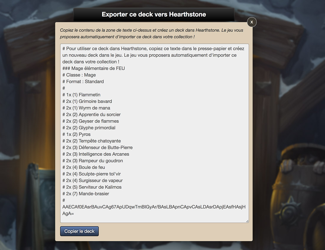 Voici les différentes étapes pour copier un deck depuis Hearthstone-Decks vers Hearthstone.