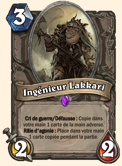 Démarche de création de la carte : "Pour cette carte, c'est l'idée de contrer un sort directement dans la main adverse qui m'est venue en premier. L'effet me paraissait inédit et original, car par cette carte, il est possible de venir perturber le plan de jeu adverse. En revanche, je souhaitais qu'elle reste équilibrée. Pour cela, j'ai cherché plusieurs moyens de compenser la destruction du sort adverse. Dans une version antérieure, le sort détruit infligeait son coût en mana à notre héros. Et finalement, il m'est venu la seconde mécanique du coût en mana qui vient "créer" les statistiques du serviteur.
