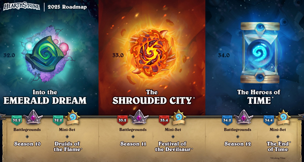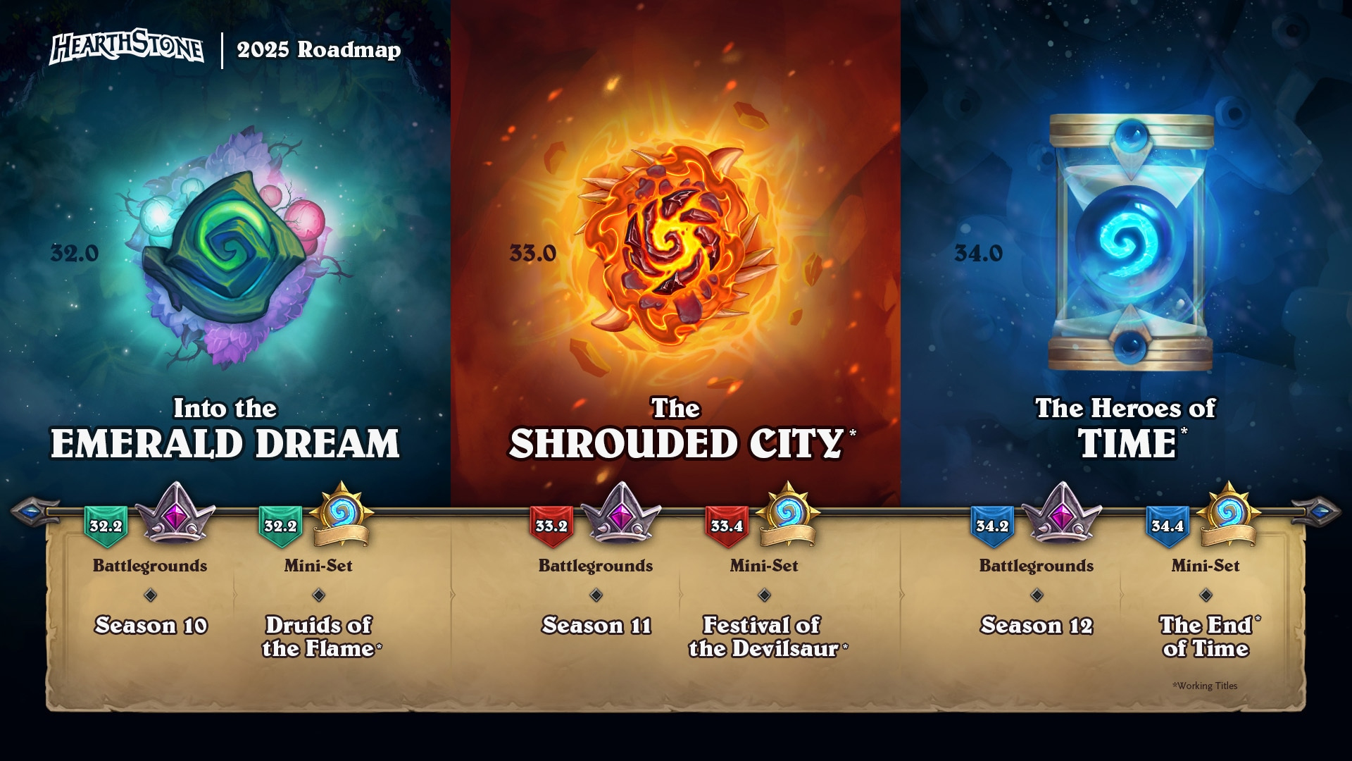 Nous découvrons aussi la feuille de route pour Hearthstone de l'année 2025. C'est l'occasion de voir le thème de la première extension de l’année, le Rêve d’émeraude où vous participerez à la bataille entre les Dieux très anciens et les druides du Rêve d’émeraude pour la sauvegarde de l’Arbre-Monde.