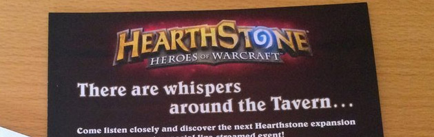 Alors que les cartes de la rotation du site officiel laissaient penser que la nouvelle extension serait sur le thème des dieux très anciens, un nouvel indice vient appuyer la théorie. Sur le carton d'invitation envoyé à la presse (merci à Judgehype pour la photo), Blizzard indique : There are whispers around the tavern.