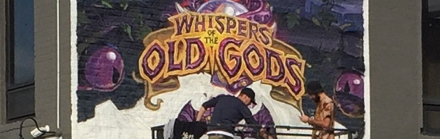 Une publicité avait le logo Whispers of the old Gods peinte sur un bâtiment