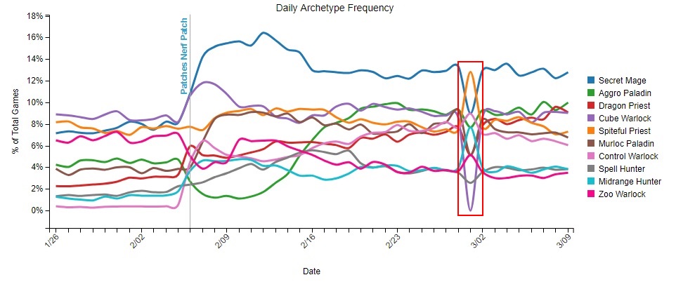 Attention le graphique considère le Prêtre Dragon Contrôle et le Prêtre Dragon OTK comme un unique deck