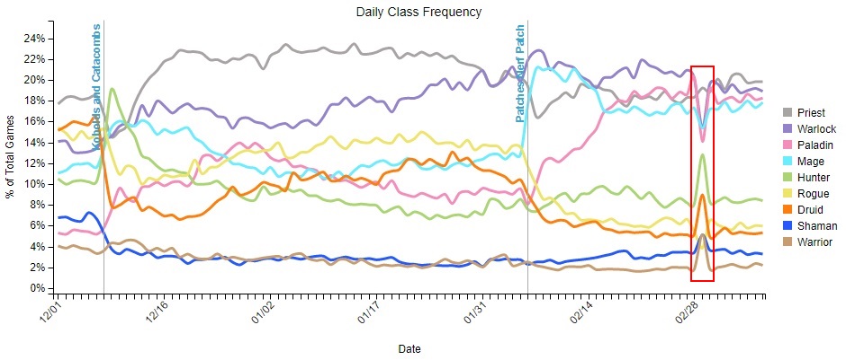 Le Prêtre est de nouveau la classe la plus jouée, juste devant le Démoniste.