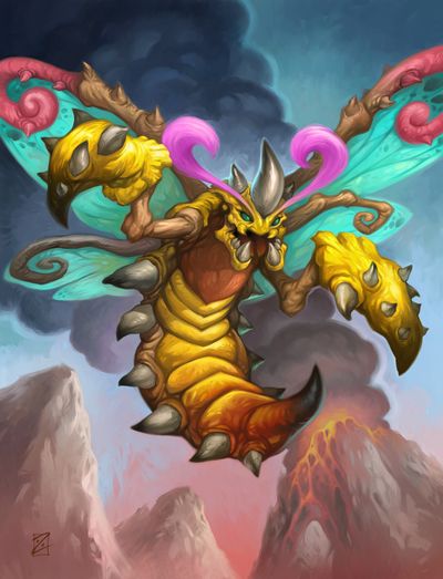 La carte Guêpe géante ne ressemble pas vraiment à un serviteur camouflé avec ses grandes antennes roses. La raison à cela est simple. Son artwork a été créé en premier. Ensuite, les développeurs ont décidé de lui donner les effets « Toxicité » et « Camouflage » parce qu’il s'agissait vraisemblablement de la seule carte qui pouvait bénéficier de ces effets.