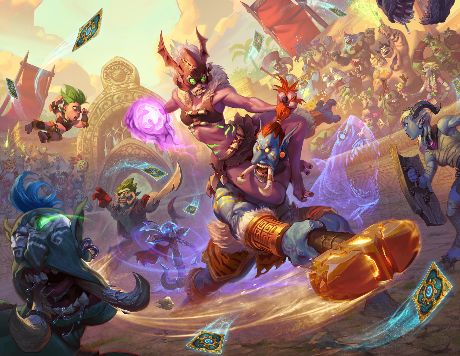 Ce nouveau set, composé de 135 cartes Rastakhan, apporte le nouveau mot-clé Brutalité, une carte Loa et Champion troll légendaires pour chaque classe ainsi que l'aventure solo Jeux trolls.