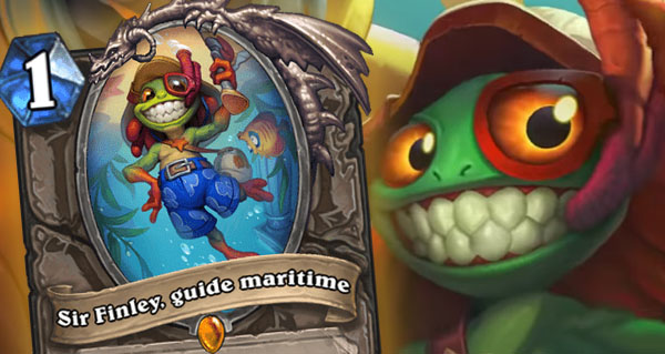 C'est un personnage bien que nous que nous retrouvons ici puisqu'il s'agit de Sir Finley, guide maritime. Cette légendaire coûte 1 cristal de mana. Son Cri de guerre échange votre main avec le fond de votre deck.
