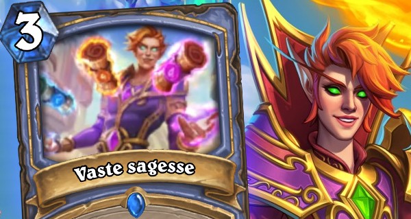 Vaste sagesse est un sort destiné au Mage et il coûte 3 cristaux de mana. Une fois joué, ce sort permet de découvrir 2 sorts coûtant 3 cristaux de mana ou moins et d'échanger leur coût.