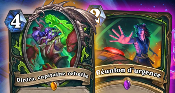 Parmi ces cartes, nous découvrons la légendaire Dirdra, capitaine rebelle qui a pour particularité de placer, grâce à son Cri de guerre, les 8 membres d'équipage dans votre deck. Son Râle d'agonie vous permet d'en piocher un.