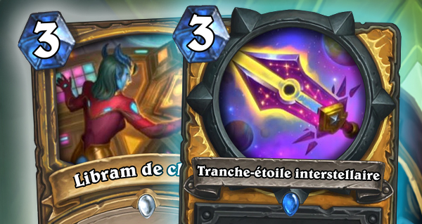 Pour réduire le coût des Librams, nous avons 2 nouvelles cartes, le Explorateur interstellaire, ainsi que l'arme Tranche-étoile interstellaire. La dernière carte est un sort épique, l'Aura céleste.