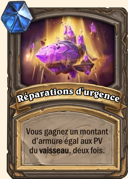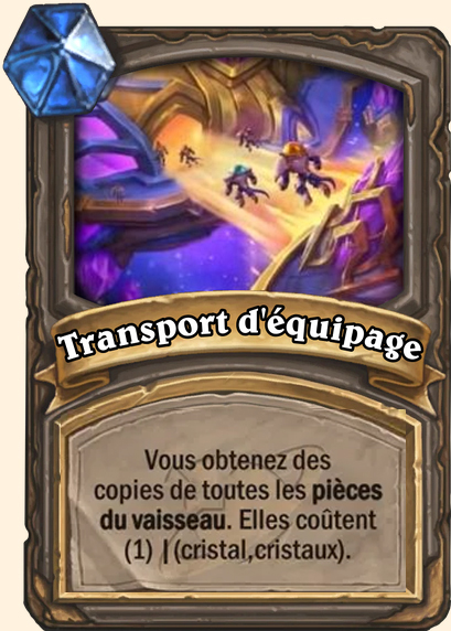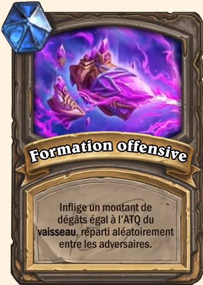 Cette carte est accompagnée du serviteur neutre épique Vulpérin stellaire Échangeable et qui détruit un vaisseau ou une pièce de vaisseau grâce à son Cri de guerre.