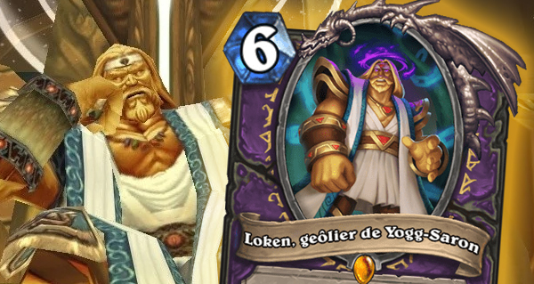Dans cette présentation, figurait la carte légendaire Loken, geôlier de Yogg-Saron qui découvre un serviteur de votre deck grâce à son Cri de guerre, et qui invoque un tentacule avec ses caractéristiques et Provocation.