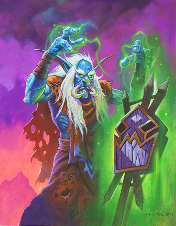 Bru’kan a lui aussi assisté à la Nuit des étoiles filantes : un soir, alors qu’il observait le ciel à l’extérieur de sa hutte, il a vu des fragments de lumière s’abattre sur les Tarides. Les poils de ses oreilles se sont dressés : c’était un signe. Bru’kan a tendu son esprit et invoqué son don de double vue pour tenter de connaître l’avenir. Il a vu deux dragons entremêlés, la lumière fusionnant avec les ténèbres, et encerclant cette vision, le symbole de la Horde dans toute sa gloire. Pour la première fois depuis de nombreuses années, l’espoir renaissait en lui.