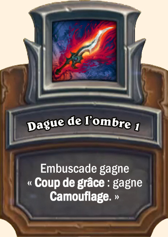 Dague de l’ombre Embuscade est plus rapide de (1) et gagne « Coup de grâce : gagne Camouflage. » Embuscade est plus rapide de (2) et gagne « Coup de grâce : gagne Camouflage. » Embuscade est plus rapide de (3) et gagne « Coup de grâce : gagne Camouflage. » |
