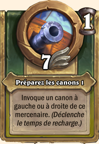 Préparez les canons Invoque un canon à gauche ou à droite de ce mercenaire. (Déclenche le temps de recharge.) Invoque un canon à gauche ou à droite de ce mercenaire. (Déclenche le temps de recharge.) Invoque un canon à gauche ou à droite de ce mercenaire. (Déclenche le temps de recharge.) Invoque un canon à gauche ou à droite de ce mercenaire. (Déclenche le temps de recharge.) |