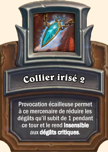 Collier irisé Provocation écailleuse permet à ce mercenaire de réduire les dégâts subis de 2 pendant ce tour [...] Provocation écailleuse permet à ce mercenaire de réduire les dégâts subis de 3 pendant ce tour [...] |