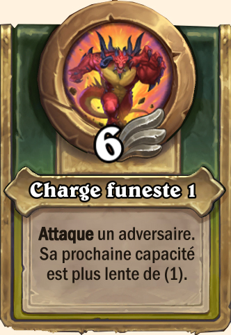 Charge funeste Attaque un adversaire. Sa prochaine capacité est plus lente de (2) Attaque un adversaire. Sa prochaine capacité est plus lente de (3) Attaque un adversaire. Sa prochaine capacité est plus lente de (4) Attaque un adversaire. Sa prochaine capacité est plus lente de (5) |