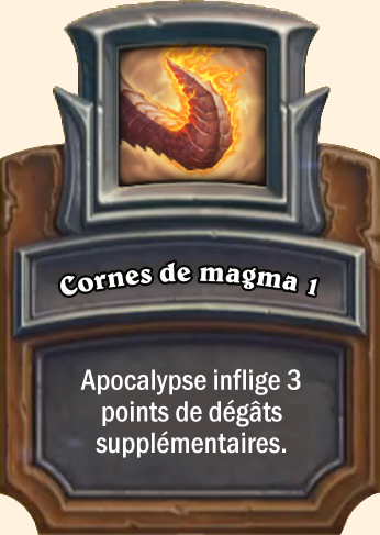 Cornes de magma Apocalypse inflige 4 points de dégâts supplémentaires Apocalypse inflige 5 points de dégâts supplémentaires Apocalypse inflige 6 points de dégâts supplémentaires |