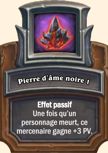 Pierre d’âme noire Effet passif. Une fois qu’un personnage meurt, ce mercenaire gagne +5 PV Effet passif. Une fois qu’un personnage meurt, ce mercenaire gagne +7 PV Effet passif. Une fois qu’un personnage meurt, ce mercenaire gagne +10 PV |