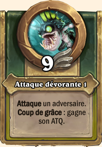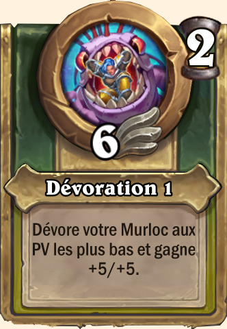 Dévoration Dévore votre Murloc aux PV les plus bas et gagne +10/+10 Dévore votre Murloc aux PV les plus bas et gagne ses caractéristiques Dévore votre Murloc aux PV les plus bas et gagne ses caractéristiques Dévore votre Murloc aux PV les plus bas et gagne ses caractéristiques |