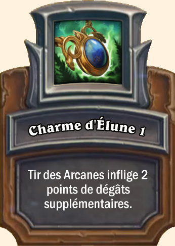 Charme d'Elune Tir des Arcanes inflige 3 points de dégâts supplémentaires Tir des Arcanes inflige 4 points de dégâts supplémentaires Tir des Arcanes inflige 5 points de dégâts supplémentaires |