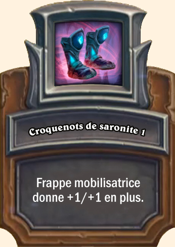 Croquenots de saronite Frappe mobilisatrice donne +2/+2 en plus Frappe mobilisatrice donne +3/+3 en plus Frappe mobilisatrice donne +4/+4 en plus |