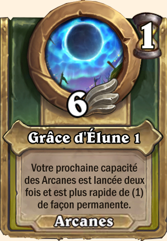 Grâce d'Élune Votre prochaine capacité des Arcanes est lancée deux fois et est plus rapide de (2) de façon permanente Votre prochaine capacité des Arcanes est lancée deux fois et est plus rapide de (3) de façon permanente Votre prochaine capacité des Arcanes est lancée deux fois et est plus rapide de (3) de façon permanente Votre prochaine capacité des Arcanes est lancée deux fois et est plus rapide de (3) de façon permanente |