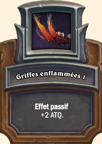 Griffes enflammées Effet passif. +4 ATQ Effet passif. +6 ATQ Effet passif. +8 ATQ |