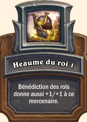 Heaume du roi Bénédiction des rois donne aussi +2/+2 à ce mercenaire Bénédiction des rois donne aussi +3/+3 à ce mercenaire Bénédiction des rois donne aussi +4/+4 à ce mercenaire |