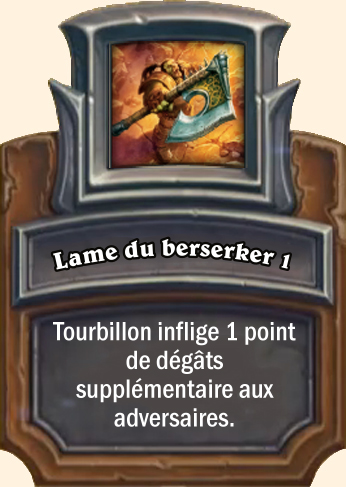 Lame de berserker Tourbillon inflige 2 points de dégâts supplémentaires aux adversaires Tourbillon inflige 3 points de dégâts supplémentaires aux adversaires Tourbillon inflige 4 points de dégâts supplémentaires aux adversaires |