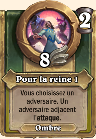 Pour la reine Vous choisissez un adversaire. Un adversaire adjacent l’attaque Vous choisissez un adversaire. Un adversaire adjacent l’attaque Vous choisissez un adversaire. Un adversaire adjacent l’attaque Vous choisissez un adversaire. Un adversaire adjacent l’attaque |