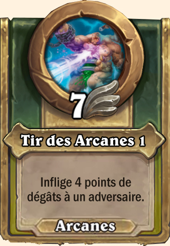 Tir des Arcanes Inflige 8 points de dégâts à un adversaire Inflige 12 points de dégâts à un adversaire Inflige 13 points de dégâts à un adversaire Inflige 14 points de dégâts à un adversaire |