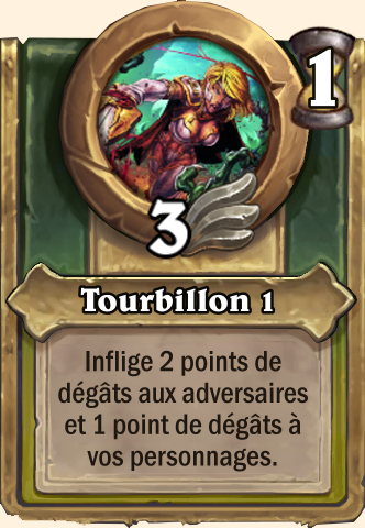 Tourbillon Inflige 5 points de dégâts aux adversaires et 1 point de dégâts à vos personnages Inflige 8 points de dégâts aux adversaires et 1 point de dégâts à vos personnages Inflige 9 points de dégâts aux adversaires et 1 point de dégâts à vos personnages Inflige 10 points de dégâts aux adversaires et 1 point de dégâts à vos personnages |