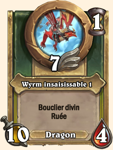 Wyrm insaisissable Bouclier divin. Ruée (14/6) Bouclier divin. Ruée (18/8) Bouclier divin. Ruée (19/9) Bouclier divin. Ruée (20/10) |