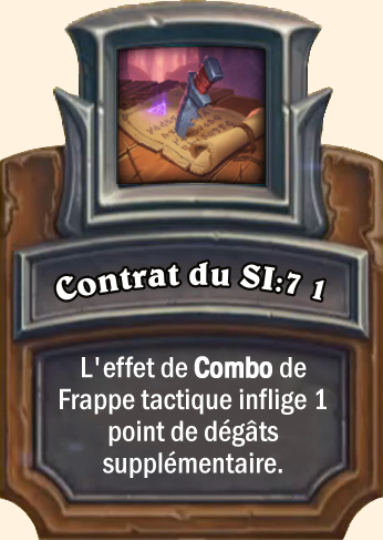 Contrat du SI:7 L'effet de Combo de Frappe tactique inflige 2 points de dégâts supplémentaires L'effet de Combo de Frappe tactique inflige 3 points de dégâts supplémentaires L'effet de Combo de Frappe tactique inflige 4 points de dégâts supplémentaires |