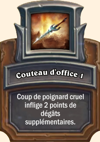 Couteau d'office Coup de poignard cruel inflige 3 points de dégâts supplémentaires Coup de poignard cruel inflige 4 points de dégâts supplémentaires Coup de poignard cruel inflige 5 points de dégâts supplémentaires |
