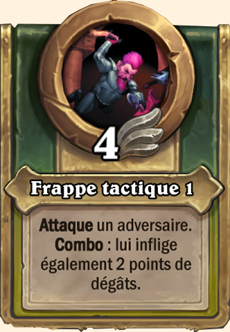 Frappe tactique Attaque un adversaire. Combo : lui inflige également 5 points de dégâts Attaque un adversaire. Combo : lui inflige également 8 points de dégâts Attaque un adversaire. Combo : lui inflige également 9 points de dégâts Attaque un adversaire. Combo : lui inflige également 10 points de dégâts |