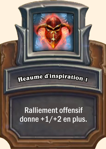 Heaume d'inspiration Ralliement offensif donne +1/+3 en plus Ralliement offensif donne +2/+3 en plus Ralliement offensif donne +2/+4 en plus |