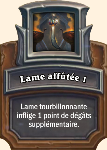 Lame affûtée Lame tourbillonnante inflige 2 points de dégâts supplémentaires Lame tourbillonnante inflige 3 points de dégâts supplémentaires Lame tourbillonnante inflige 4 points de dégâts supplémentaires |