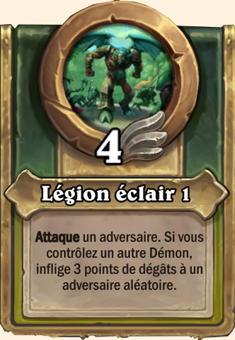 Légion éclair [...], inflige 4 points de dégâts à un adversaire aléatoire [...], inflige 5 points de dégâts à un adversaire aléatoire [...], inflige 6 points de dégâts à un adversaire aléatoire [...], inflige 7 points de dégâts à un adversaire aléatoire |